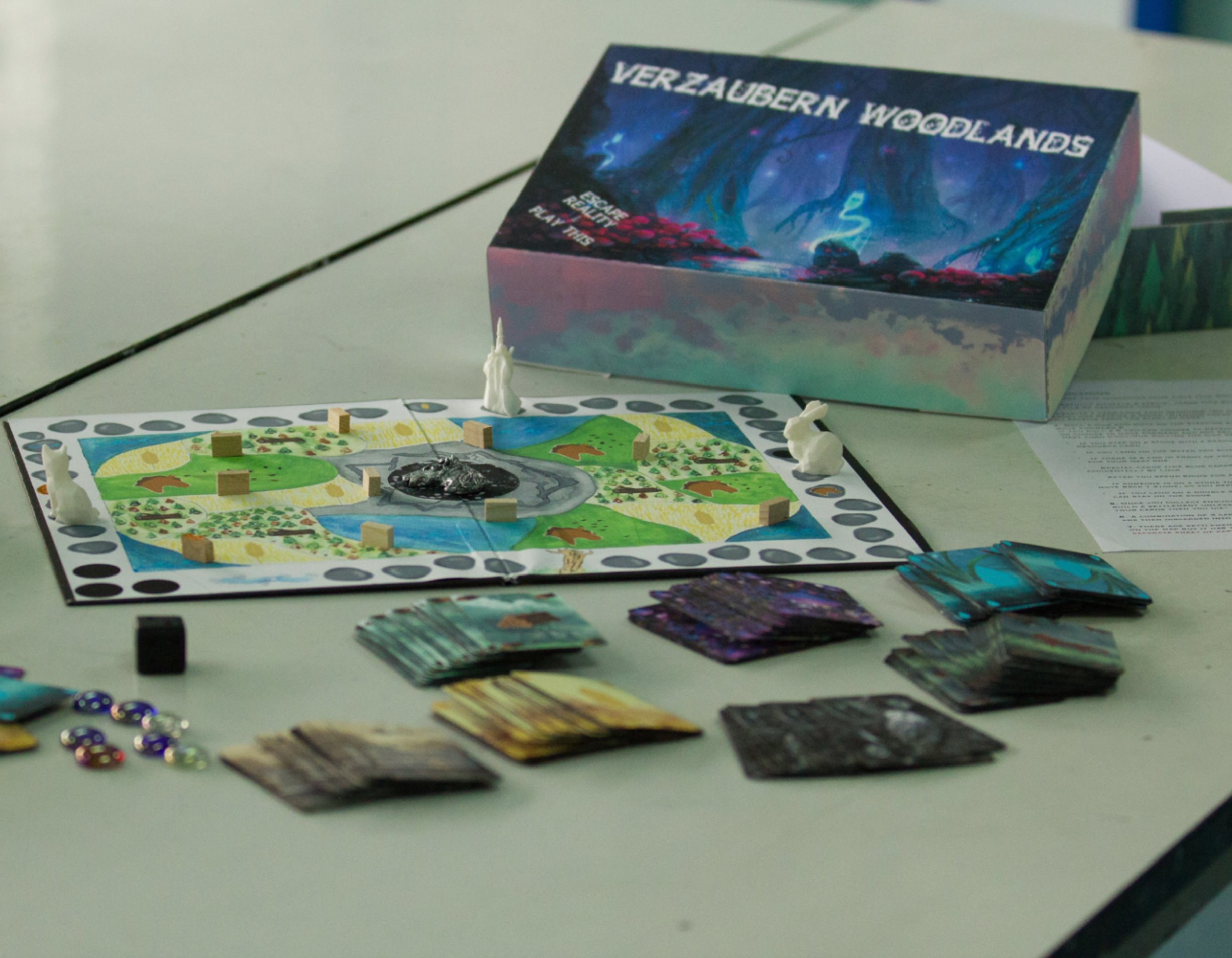 This unit combined 3D modeling and printing, graphic design, book binding techniques and package design. Students researched and created board games based on themes. The outputs included: