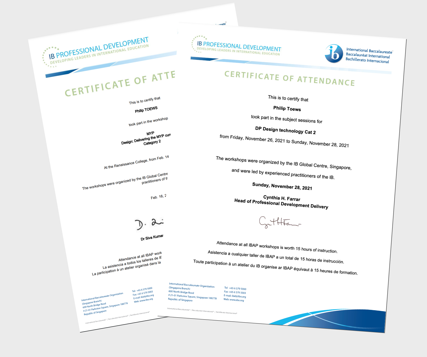 I have completed both DP and MYP category 2 level training in Design for the International Baccalaureate.