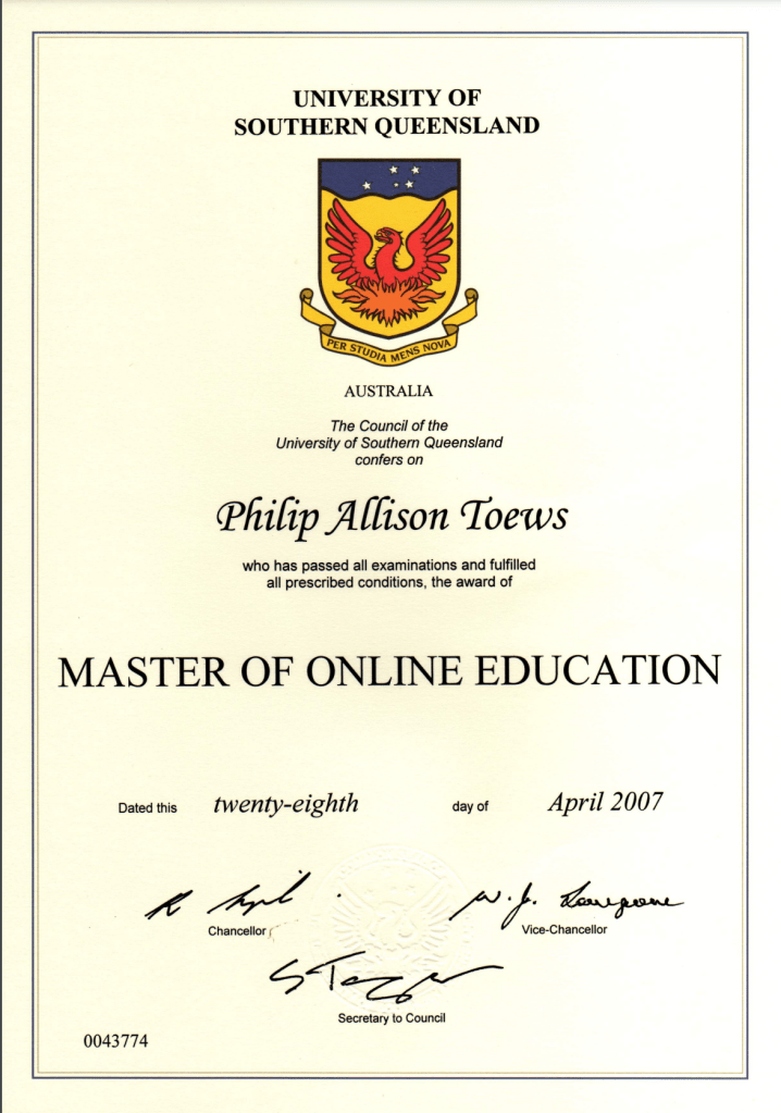 In 2007 I was awarded my M. Ed. in Online Education. My industry professional web development and media skills in combination with my formal training in online education came in very handy during the COVID pandemic.